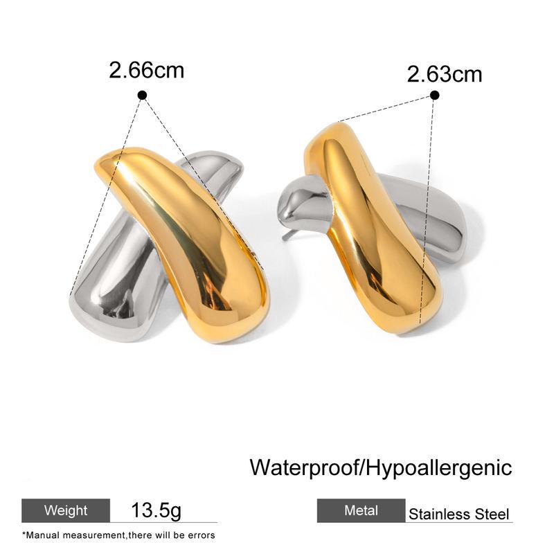 Step up your jewelry game with these stunning 18K PVD Gold Plated Chubby X Shaped Earrings. Crafted from high-quality stainless steel and coated in a luxurious 18K PVD gold plating, these minimalist earrings are designed to make a statement. The chic, X-shaped design is both bold and timeless, making them perfect for everyday wear or special occasions. Their anti-scratch, waterproof material ensures long-lasting shine and durability, so you can enjoy these earrings for years to come.
