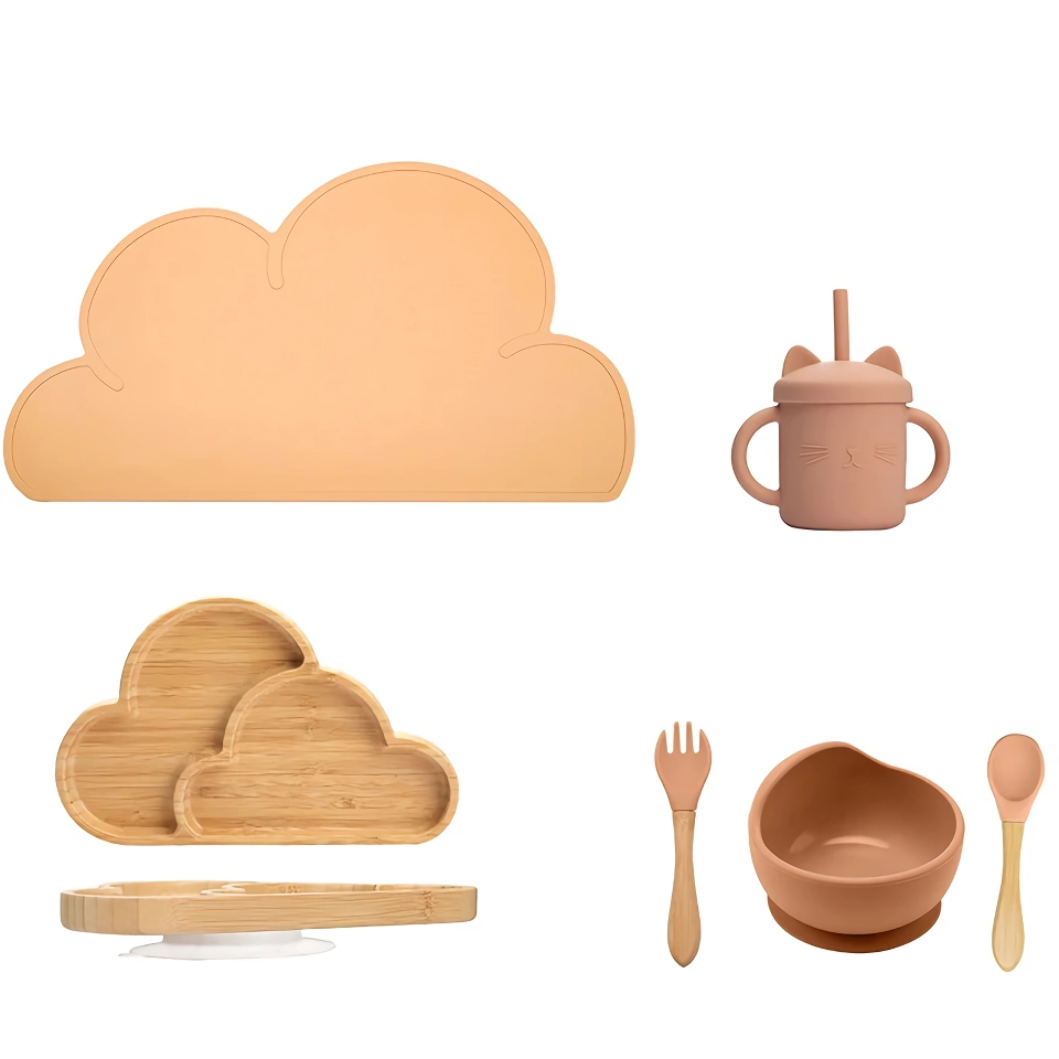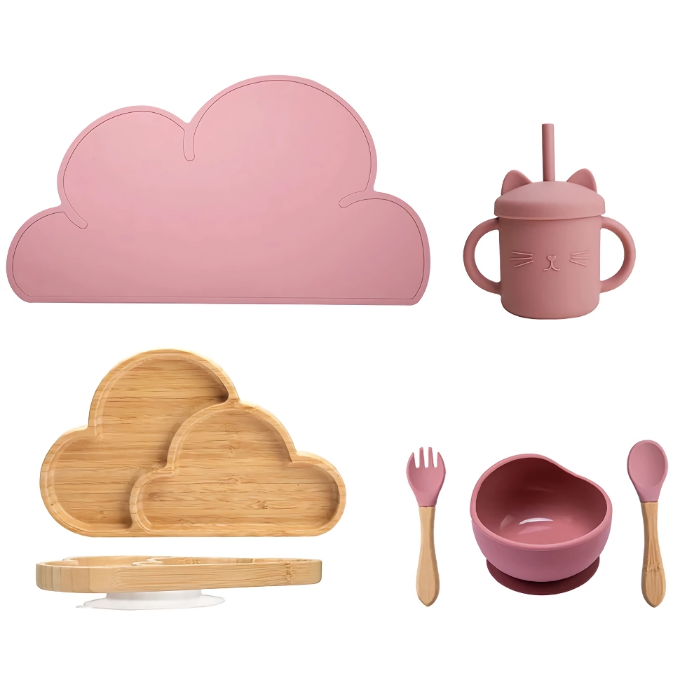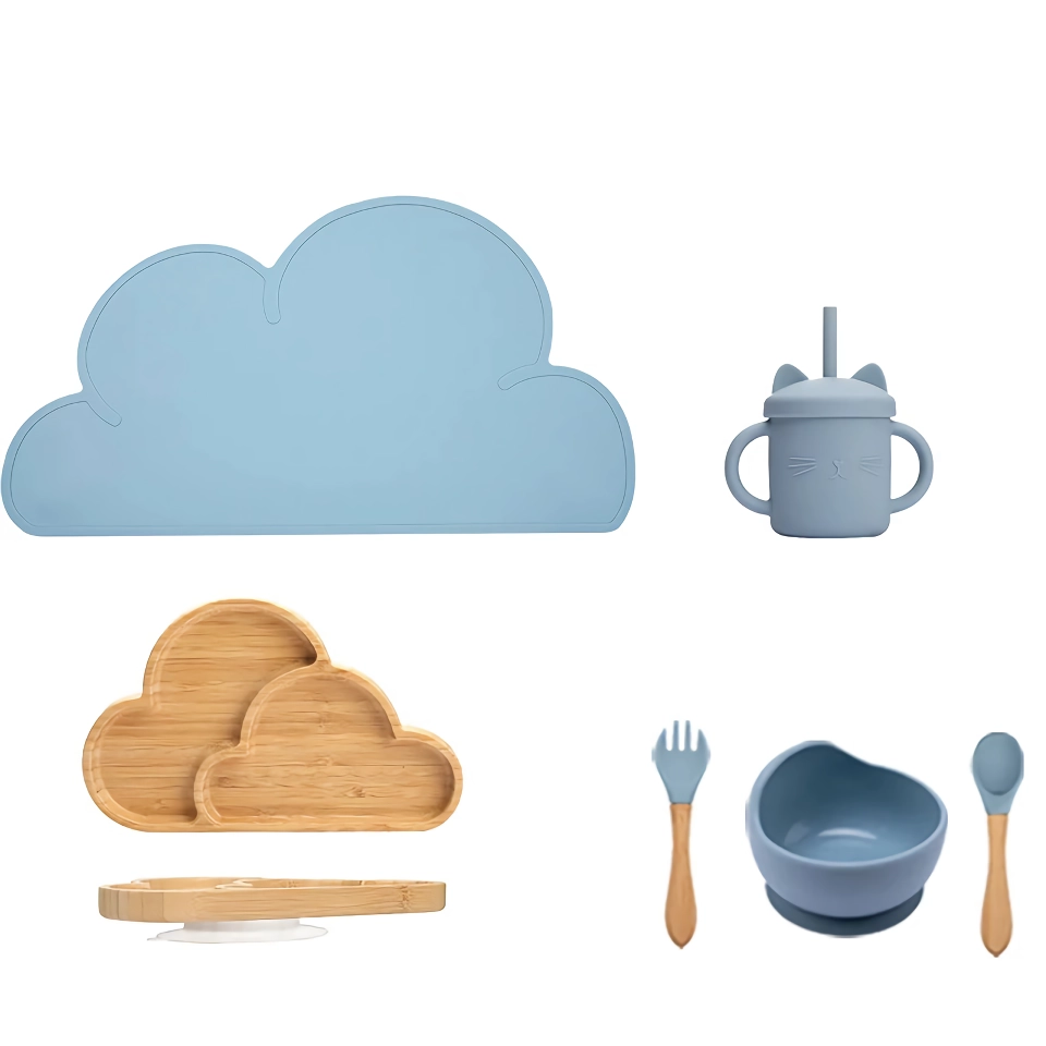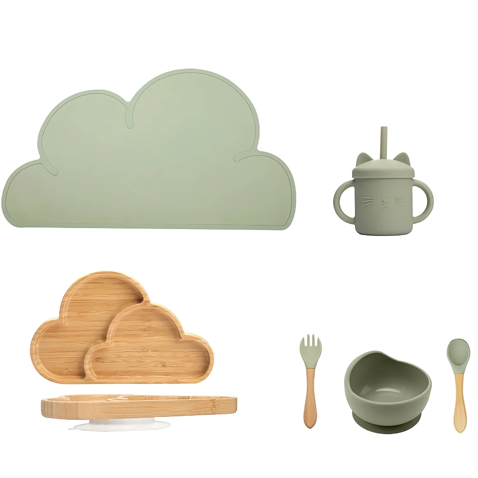 This set stands out with its eco-friendly materials and charming design. The cloud-shaped plate is not only visually appealing but also practical with its divided sections for easy food separation. The use of high-quality, baby-safe materials ensures peace of mind for parents, while the wooden and silicone combination adds a touch of natural elegance to your baby’s dining experience.