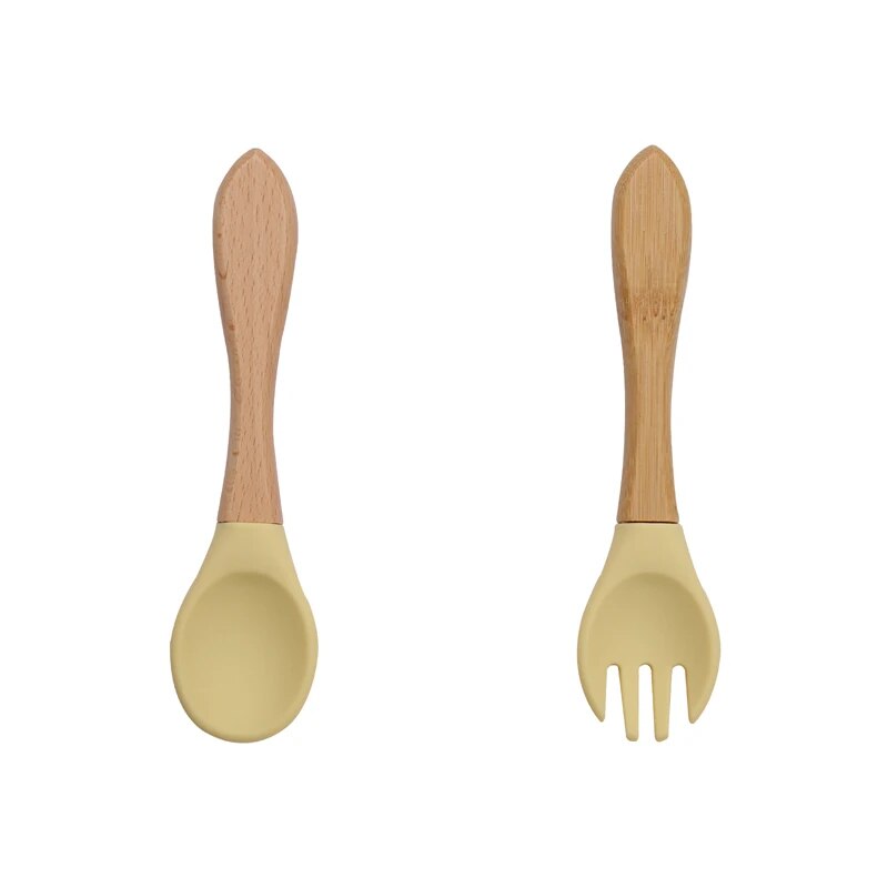 Introducing our 2PCS Baby Bamboo Fork Silicone Wooden Feeding Set, the ultimate solution to your baby’s mealtime needs. Crafted with care and precision, this set combines the natural charm of bamboo with the safety and reliability of food-grade silicone, ensuring a worry-free dining experience for your precious little bundle.