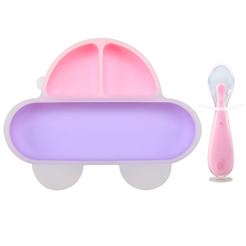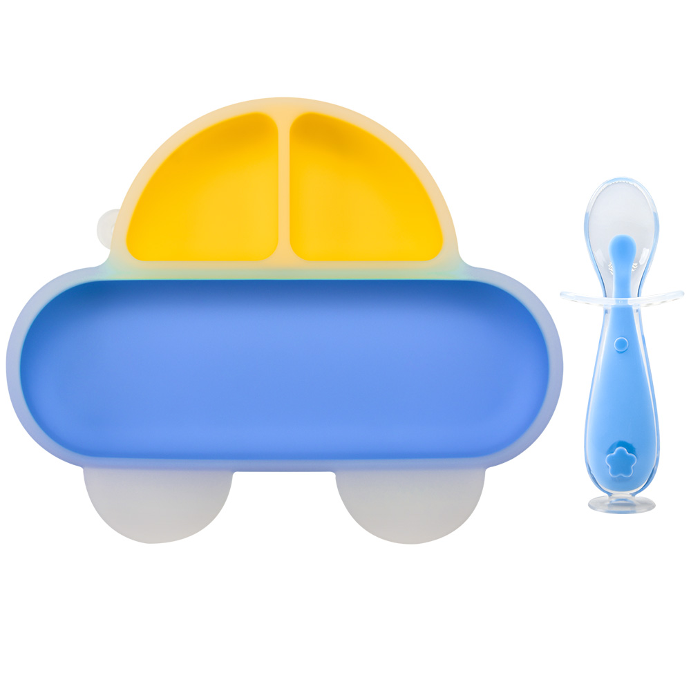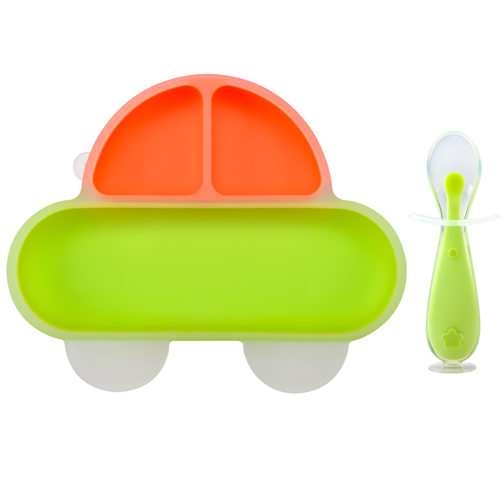 Our tableware set is designed to make feeding time a breeze. The car-shaped plate is divided into multiple sections, allowing you to serve different foods without them mixing together – perfect for picky eaters! The soft silicone material is ideal for tiny hands learning to self-feed, and the matching spoon set is ergonomically designed for easy grip, making it simple for your little one to scoop and eat.