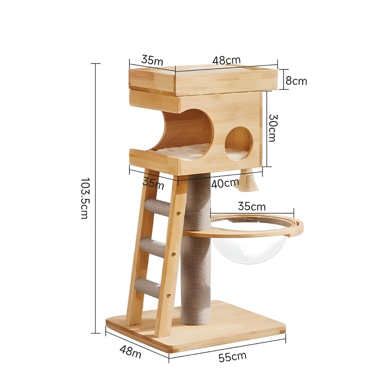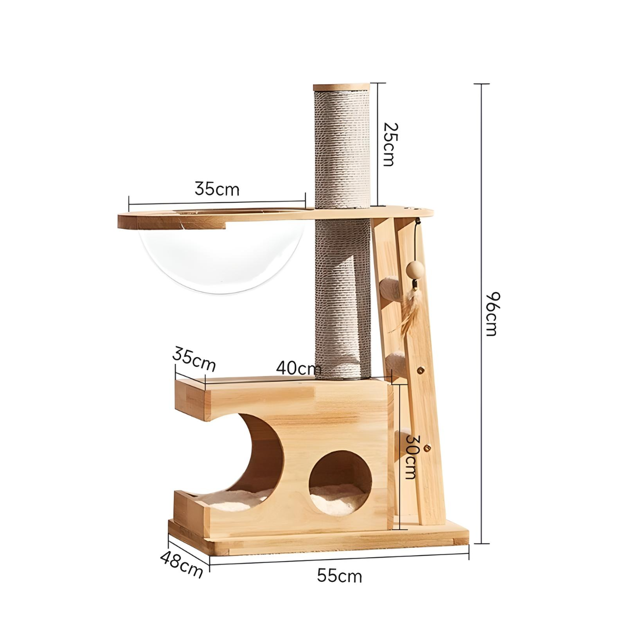 What sets our Cat Tree House apart is its thoughtful design, combining aesthetics with functionality. The wooden material not only adds a touch of elegance but also ensures durability and stability. Each tier is easily accessible, accommodating cats of all ages and sizes. The integrated scratching posts made from pet-friendly materials protect your furniture while satisfying your cat’s natural scratching instincts.