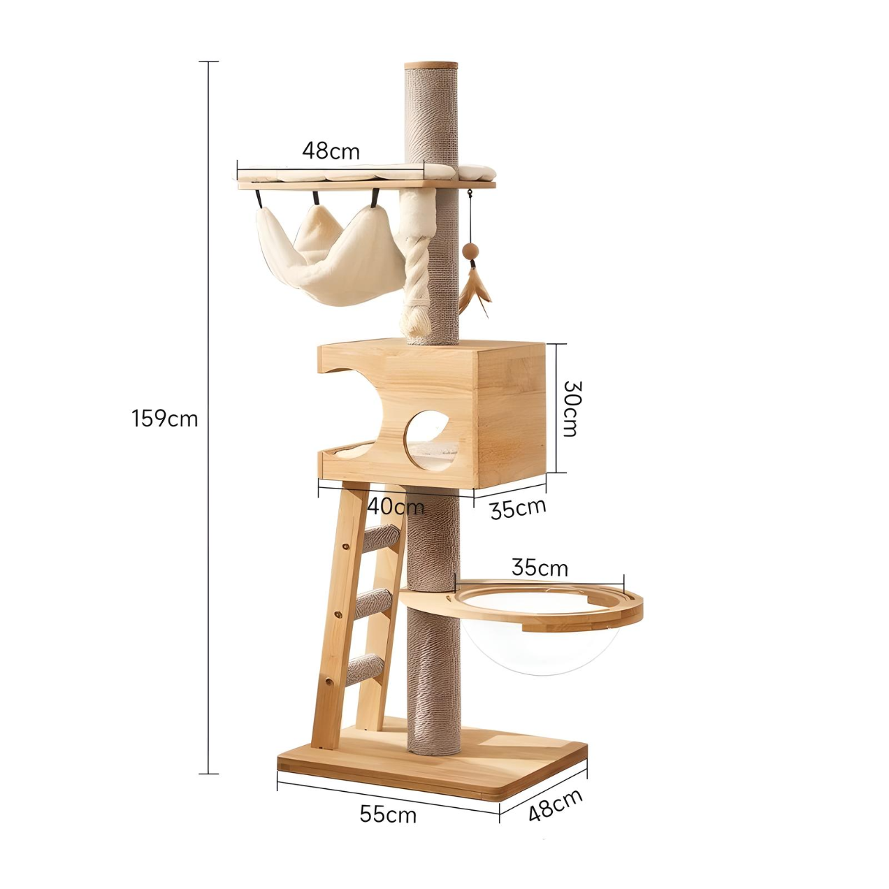Our Cat Tree House stands out with its impressive five-layer structure, offering ample space for climbing, playing, and lounging. Crafted from high-quality, durable wood, it provides a stable and safe environment for your cat’s daily adventures. The variety of platforms, nests, and scratching posts cater to your cat’s natural instincts, promoting healthy exercise and claw maintenance.