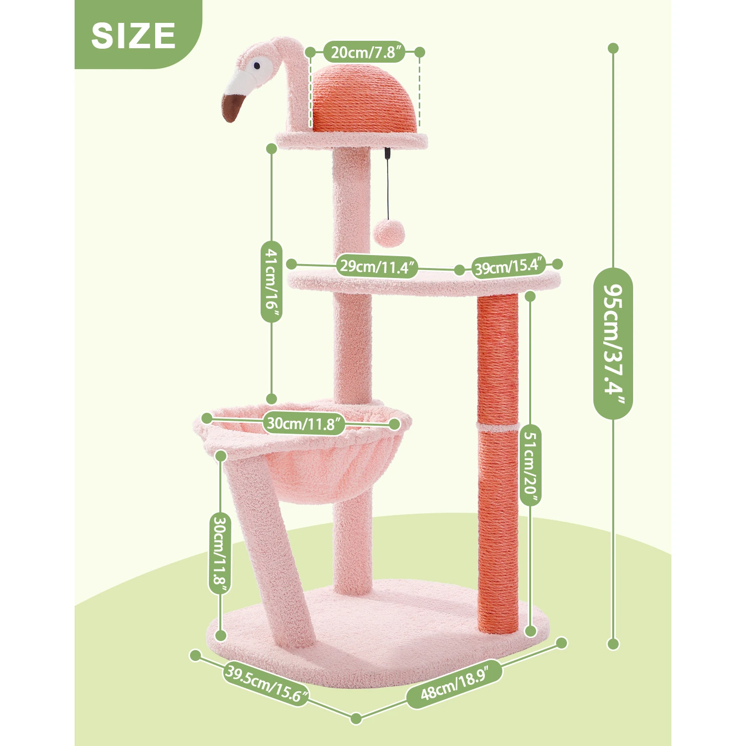 Give your furry friend the ultimate space to play, scratch, and relax with our Charming Pink Flamingo Multi-Level Cat Tree. Designed with both style and functionality in mind, this unique cat tower features a whimsical flamingo-inspired design that adds a touch of fun to any room. Perfect for small to medium-sized cats, this all-in-one playground will keep your kitty entertained for hours.