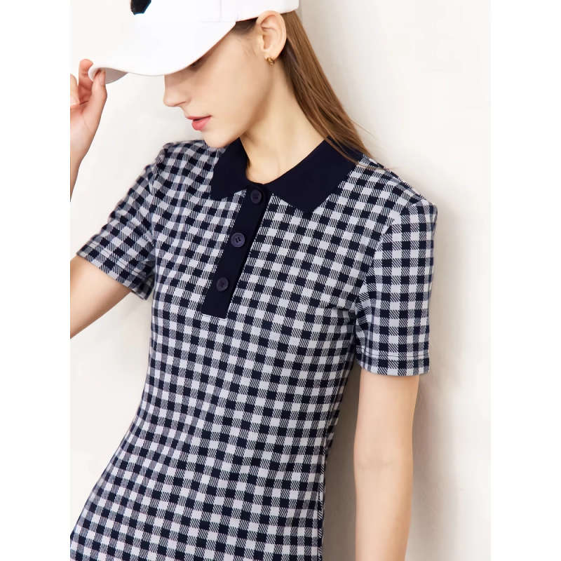 The Checkerboard Slim Polo Collar Dress stands out for its effortless elegance and modern appeal. The combination of the classic polo collar and the trendy checkerboard pattern makes it versatile and suitable for both formal and casual settings. The medium-stretch fabric ensures a perfect fit that moves with you, while the A-line silhouette offers a flattering shape for all body types. Whether you’re dressing for the office or a day out, this dress will keep you looking stylish and feeling comfortable.