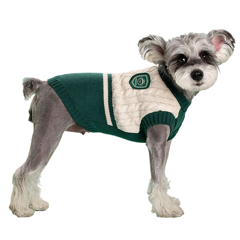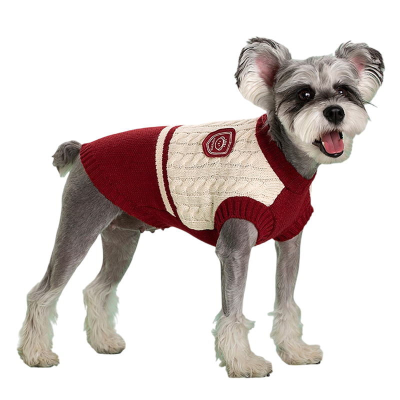 This pet sweater is perfect! It's cute, warm, and fits like a charm. Now my little buddy looks ready for college!