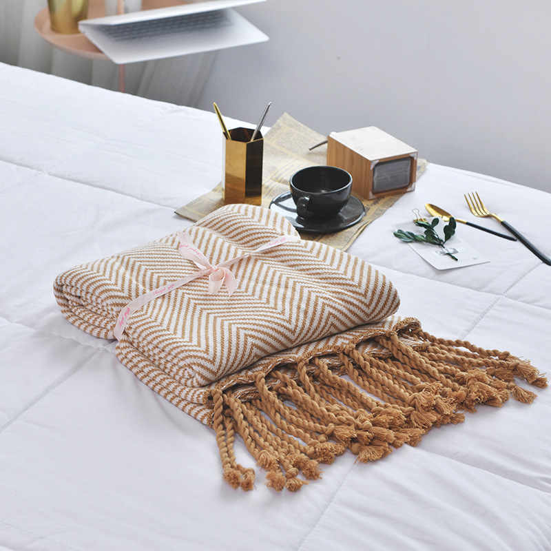 Transform your living space into a cozy retreat with the Wave Stripe Knit Throw Blanket. This top-quality blanket features a beautiful wave stripe design in soothing brown and gray tones, perfect for adding a touch of elegance to any room. Crafted from 100% pure cotton, it offers a soft, breathable, and skin-friendly texture that keeps you warm and comfortable all year round.