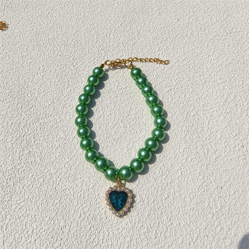 I'm impressed with this purchase; an affordable yet high-quality product. My kitten looks like royalty with these pearls around her neck plus that tiny peach-heart pendant dangling down...it's adjustable too, what more could you ask for?