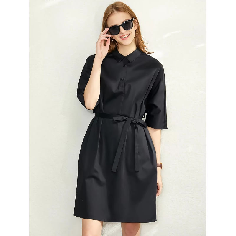 What sets this shirt dress apart is its ability to combine elegance and comfort effortlessly. The belt adds structure and enhances your figure, while the lightweight fabric ensures breathability all day long. The minimalist yet chic design makes it easy to dress up or down with accessories, giving you endless styling options. It’s a versatile addition to any woman’s wardrobe who values both style and practicality.