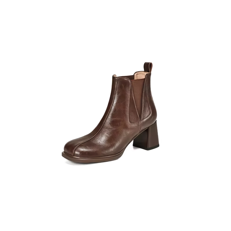 What sets our boots apart is the combination of high-quality materials and thoughtful design. The genuine cow leather and handmade craftsmanship ensure each pair is unique and durable. The short plush lining provides warmth, while the high square heel adds a touch of elegance to any outfit. Additionally, the rubber outsole ensures you can walk with confidence on various surfaces.