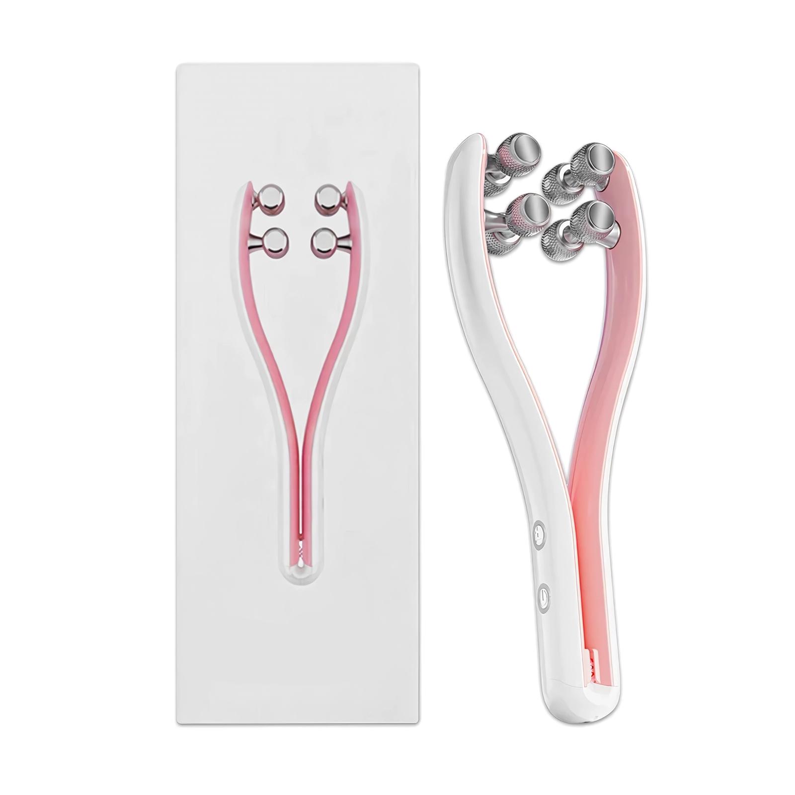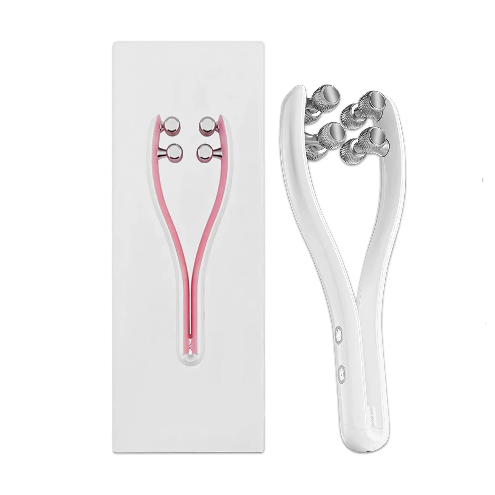 The EMS Face Lifting Roller is designed to lift, tighten, and tone your facial muscles, helping to reduce the appearance of wrinkles and fine lines. Its ergonomic Y-shape perfectly fits the contours of your face, ensuring symmetrical lifting for a more defined and smoother face shape. Equipped with eight multi-point rollers, this tool provides a thorough massage that enhances circulation, boosts collagen production, and improves skin elasticity.