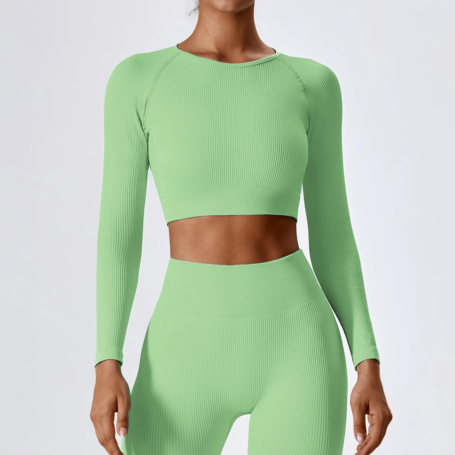 Our yoga crop top is crafted from a high-quality blend of nylon and spandex, providing both flexibility and durability. The full-length sleeves and ribbed texture offer a modern look while ensuring maximum comfort and freedom of movement. Here’s what makes our yoga crop top stand out: