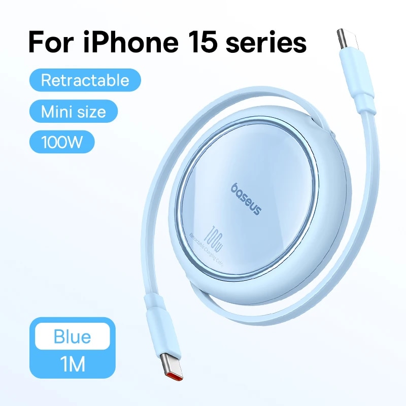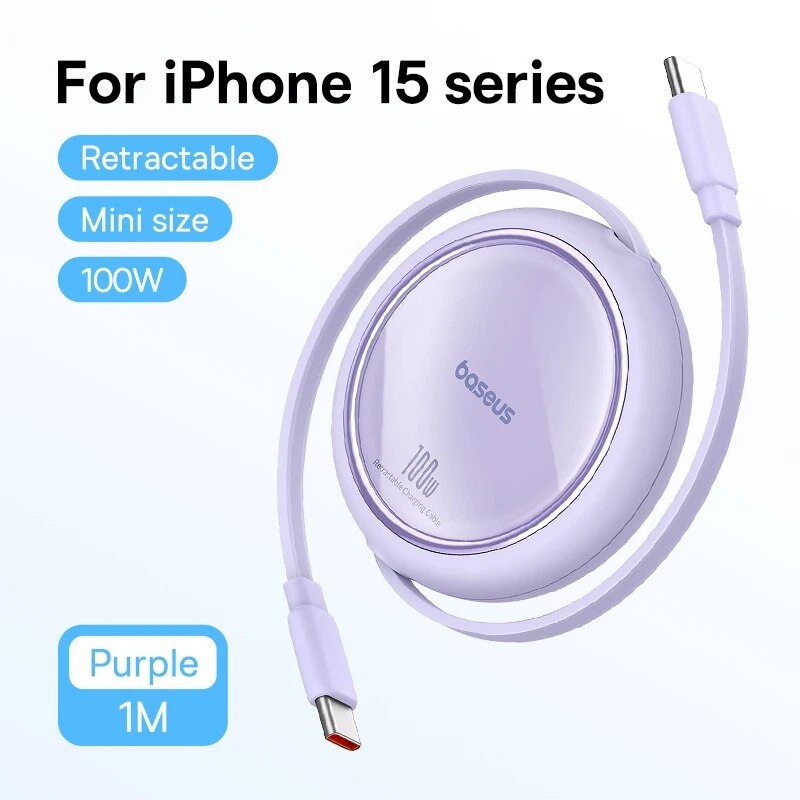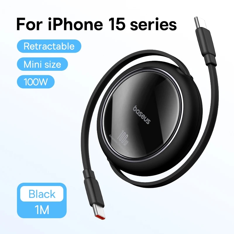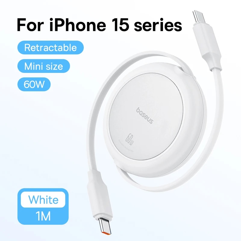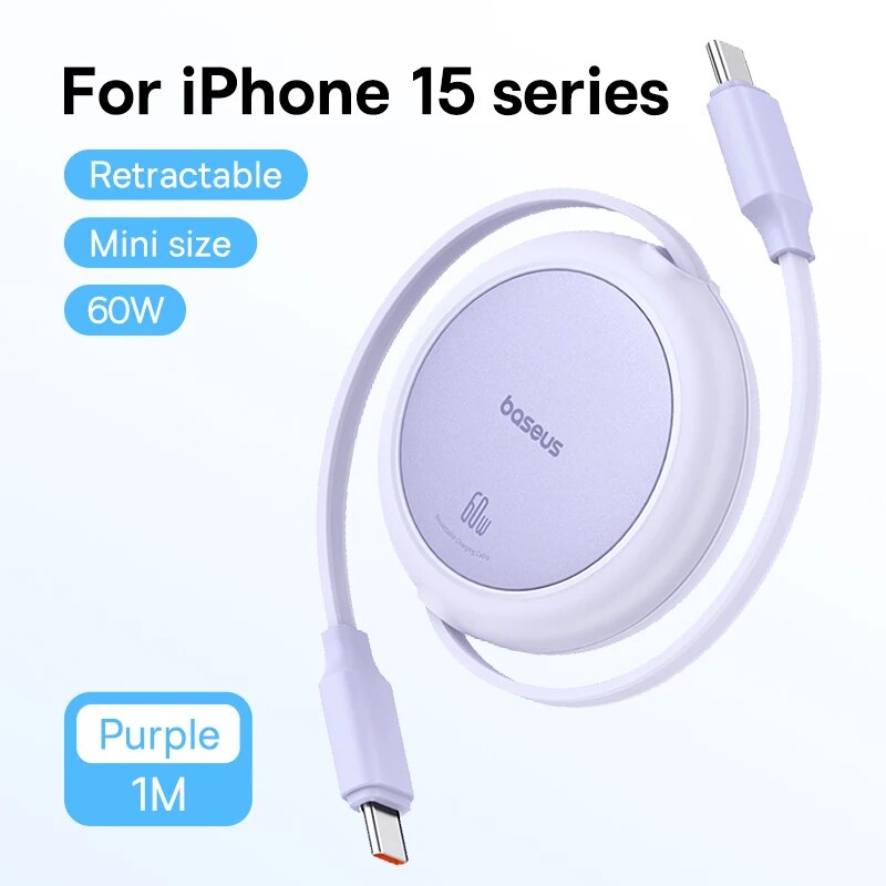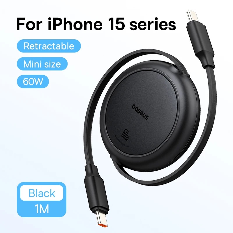The basic features of our retractable cable include an astounding 100W fast charging capability and a 480Mbps transmission rate. It’s best utilized when you need a quick power boost or data transfer for your MacBook, iPad, iPhone 15 series, and other Type-C devices. What makes this product special is its both-way retractable mechanism that extends fully, allowing you to maintain an organized charging environment effortlessly. With four length presets and durability tested for over 50,000 pulling cycles, it combines convenience with reliability.