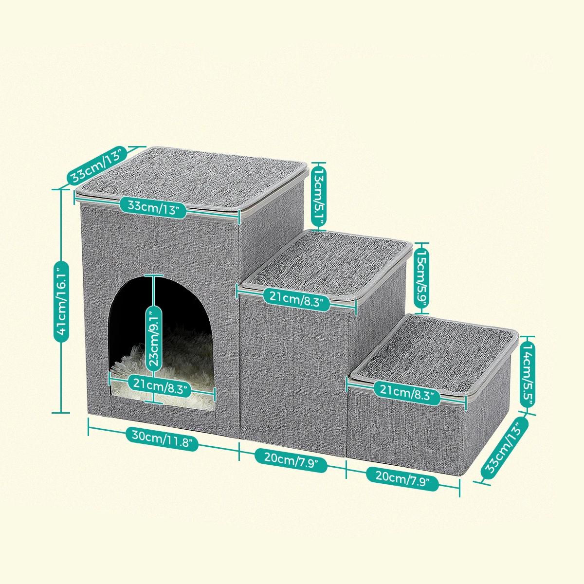 Crafted with high-quality materials, including a sturdy wooden frame and soft, supportive padding, these pet steps are built to last. The 2-in-1 design means that it’s not just a set of stairs—it’s also a convenient sleeping nest and a handy storage box for your pet’s toys and essentials. The foldable design ensures that the stairs don’t take up unnecessary space, making them easy to store when not in use. Ideal for small dogs, cats, and even puppies, this product is perfect for helping your pet climb onto beds, sofas, or any other elevated surfaces with ease.