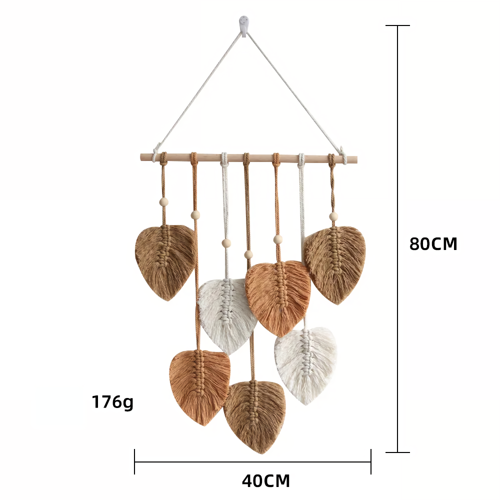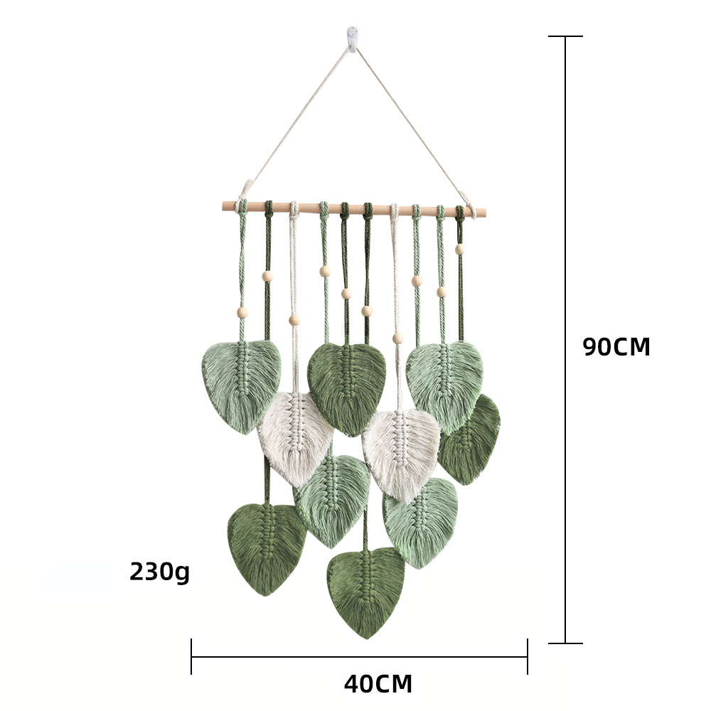 Our tapestry is made from 100% high-quality cotton rope, ensuring durability and a luxurious feel. Each piece is meticulously hand-woven by skilled artisans, making every tapestry unique with its own charm. The natural cotton material offers a soft and inviting texture that complements any decor style, especially bohemian and eclectic themes. The earthy tones and delicate leaf patterns create a soothing atmosphere, perfect for relaxation and unwinding.