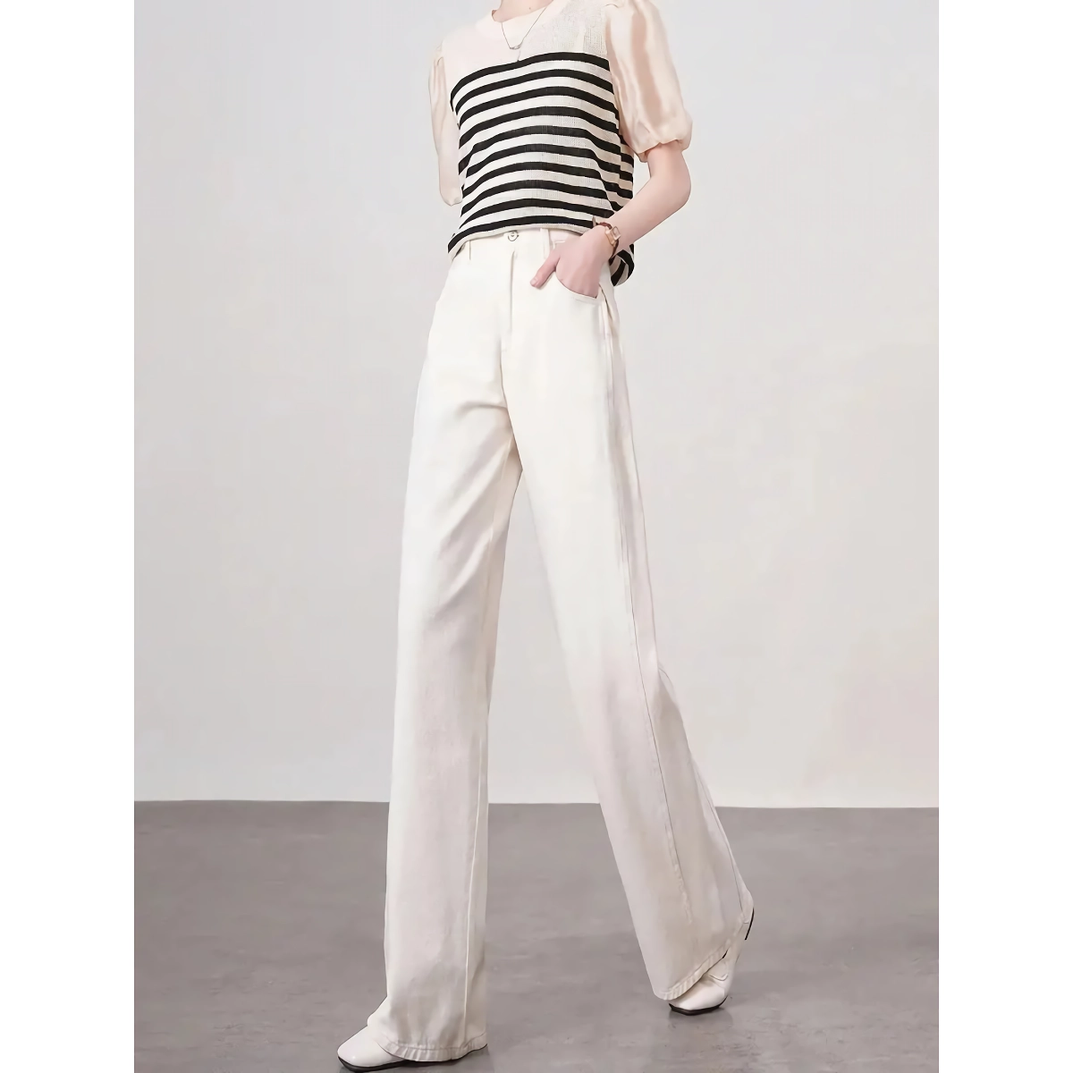 Discover the perfect blend of comfort and chic with our Women’s Spring New Straight Wide Leg Denim Pants. Designed for the modern woman, these high-waisted trousers offer a relaxed fit that’s both flattering and effortlessly stylish. Crafted from 100% cotton denim, they provide a soft, breathable feel, making them ideal for those warmer spring and summer days.