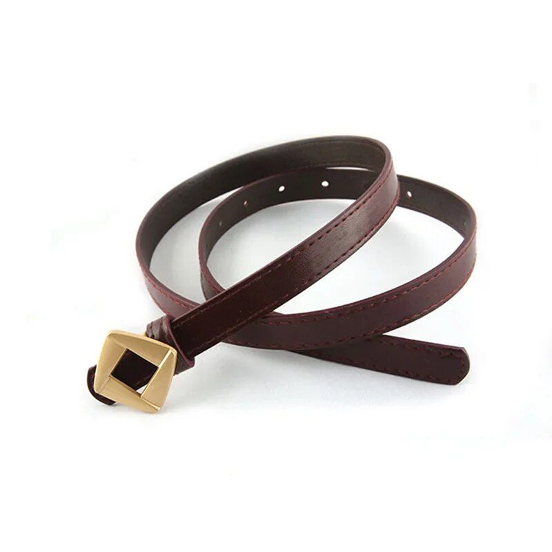 Add a touch of sophistication to your ensemble with this elegantly designed Fashion Leather Thin Belt for Women. Its sleek design is accentuated with a chic metal rhombus buckle that serves as a stunning centerpiece. Crafted from premium leather, this belt offers a blend of durability and a luxe feel, making it an essential accessory for every fashion-conscious woman.
