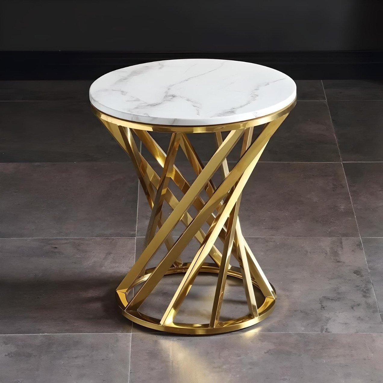 Crafted with care, the table features a pristine marble top paired with a lustrous gold stainless steel base. Its round shape brings people together, creating an intimate setting for social gatherings or peaceful solitude. The combination of marble and metal not only ensures durability but also adds a modern minimalist flair to your décor.