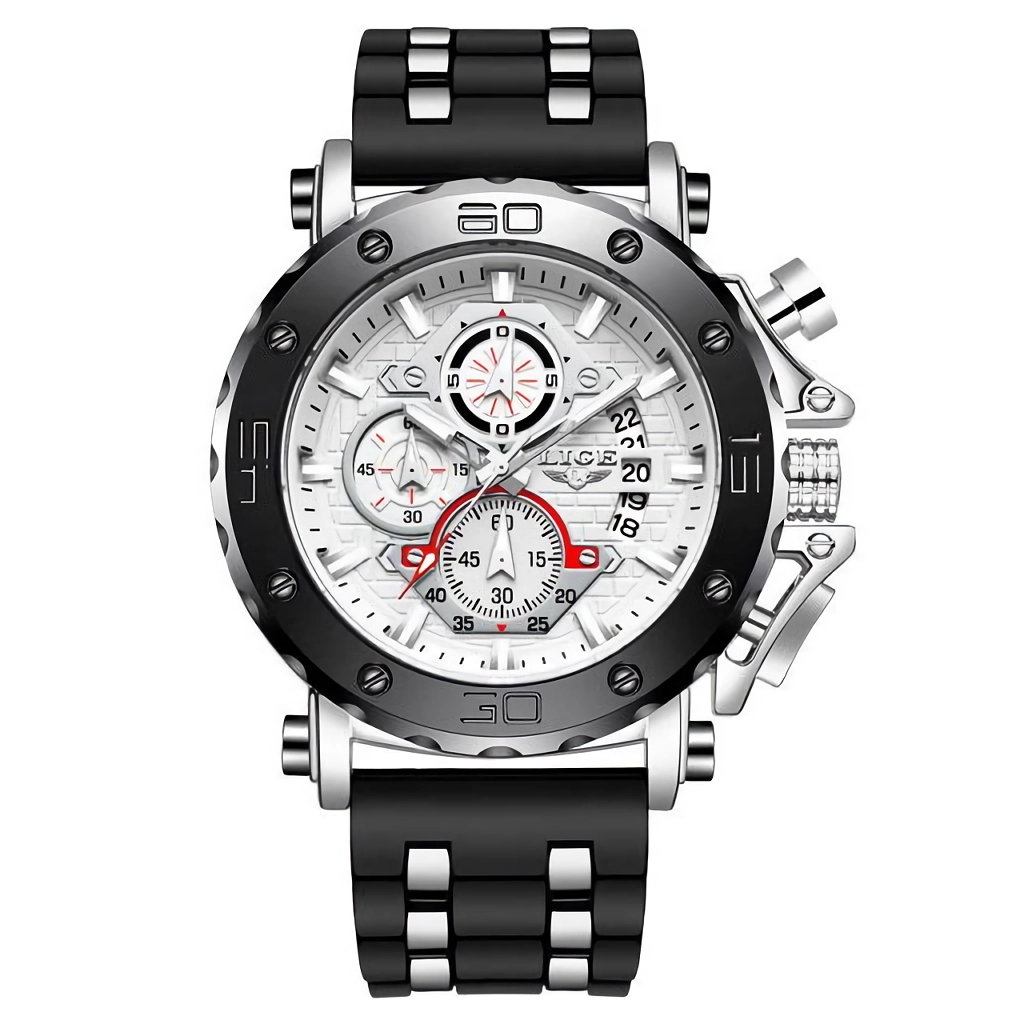 Upgrade your everyday look with this sophisticated men’s sports chronograph watch, designed for the modern man who values both style and functionality. Whether you’re heading to the office, hitting the gym, or embarking on outdoor adventures, this watch has you covered. With a durable stainless steel case, a sleek 47mm dial, and a high-quality silicone strap, this timepiece is built to handle any occasion while keeping you looking sharp.