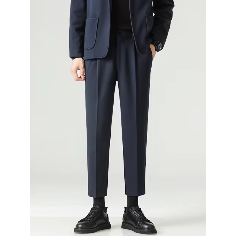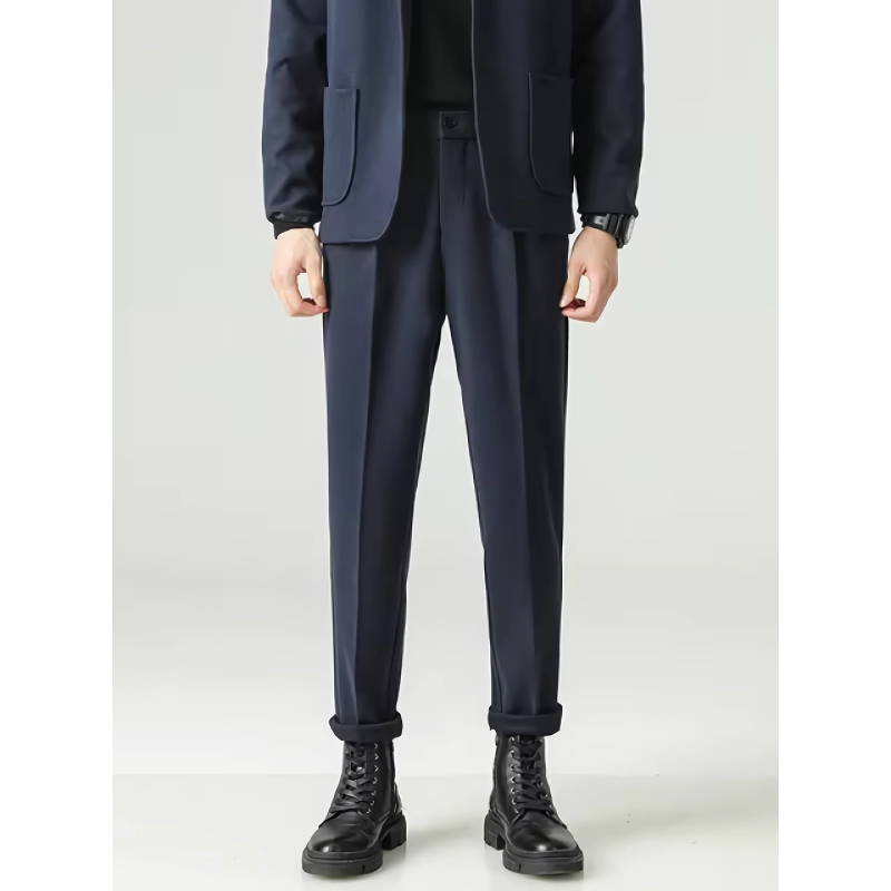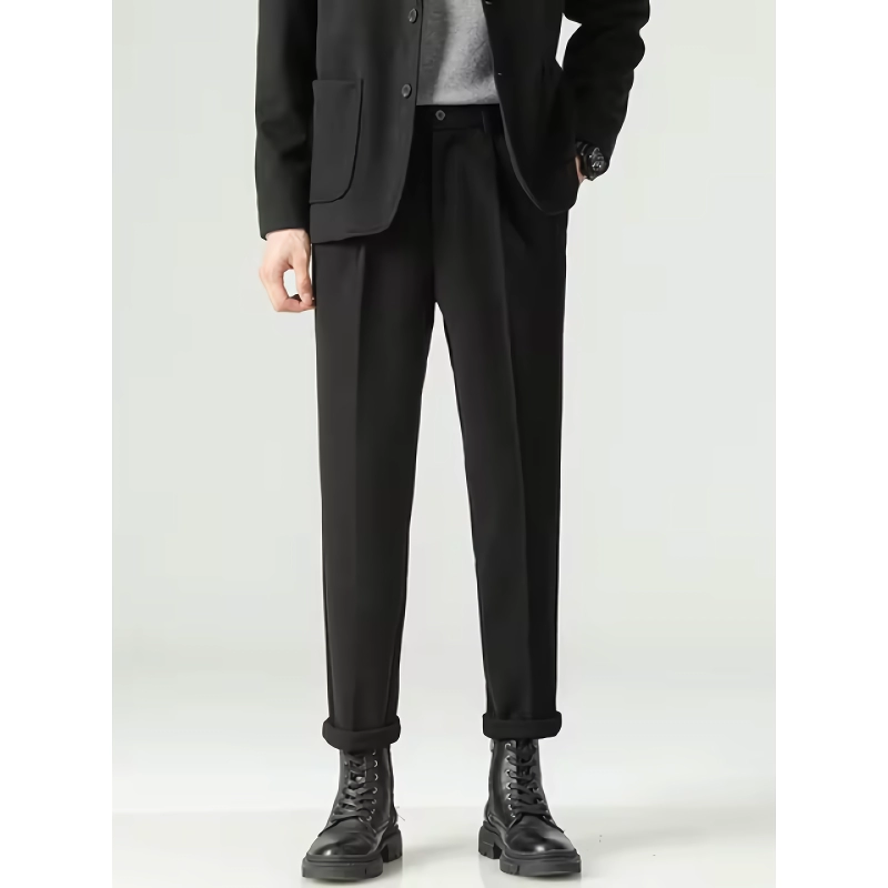 Step into sophistication with our Minimalist Loose Pleated Suit Pants. Designed for the modern man who values both style and comfort, these trousers are perfect for autumn fashion. Crafted from a blend of cotton and polyester, they offer a chic look with a comfortable feel, making them an essential addition to your wardrobe.