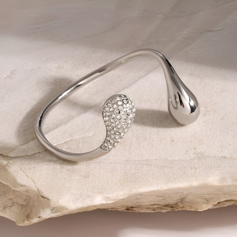 Unleash your inner fashionista with our Never Fade Stainless Steel Cubic Zirconia Stylish Open Bracelet. This exquisite bangle beautifully blends luxury and durability, making it the perfect accessory for any occasion. Crafted from high-grade stainless steel and adorned with shimmering cubic zirconia, this bracelet reflects light and elegance, adding a touch of glamour to your outfit. Whether you’re dressing up for a special event or adding sparkle to your everyday wear, this open bracelet is a must-have.