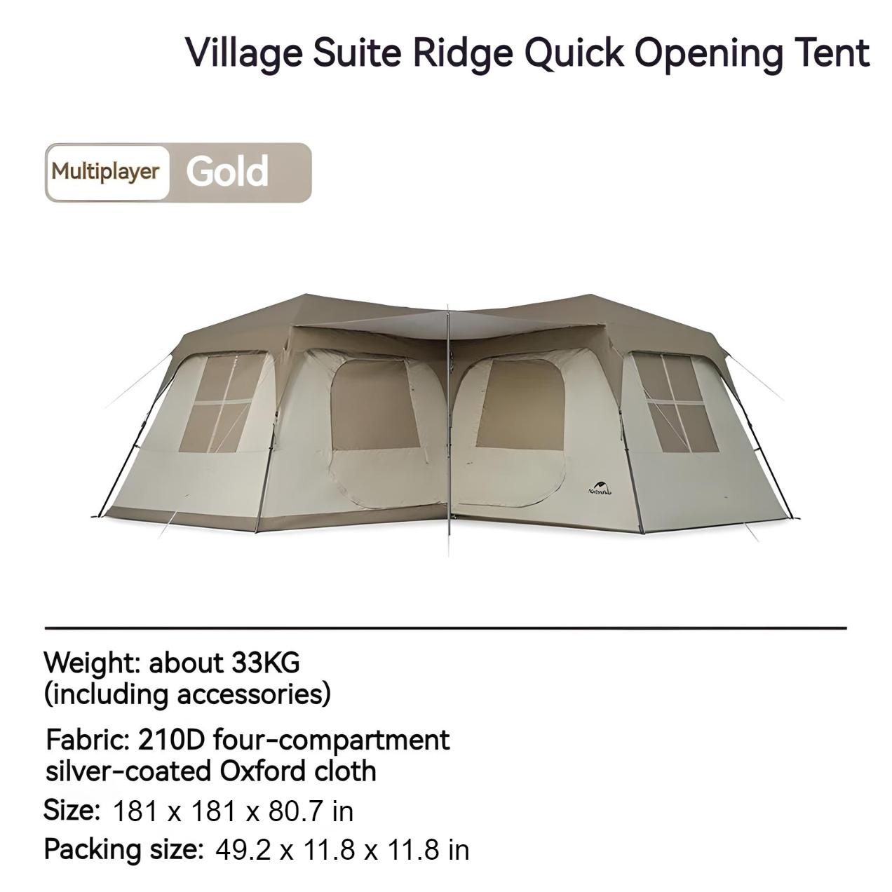 • Robust Materials: Crafted with 210D Silver Coated Oxford Cloth externally and 300D Polyester Oxford internally, our tent promises durability and weather resistance.