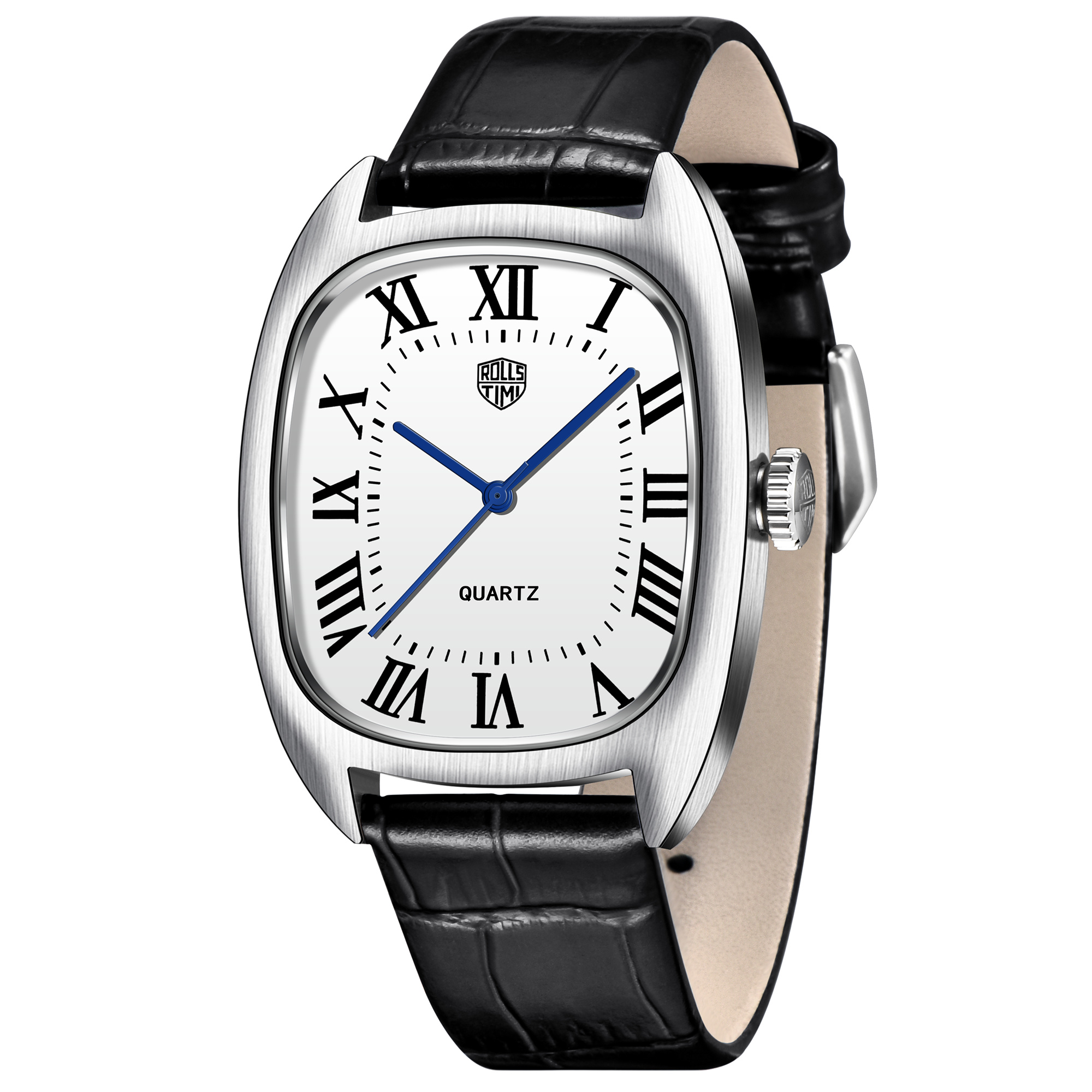 What sets the Rollstime Luxury Quartz Watch apart is its combination of luxury and functionality. The unique wine barrel-shaped case adds a distinct and sophisticated flair, while the mechanical second hand showcases expert craftsmanship. The leather strap and stainless steel case ensure durability, making this watch a long-lasting investment piece. It’s the perfect balance between elegance and reliability, appealing to men who appreciate classic luxury with a modern twist.