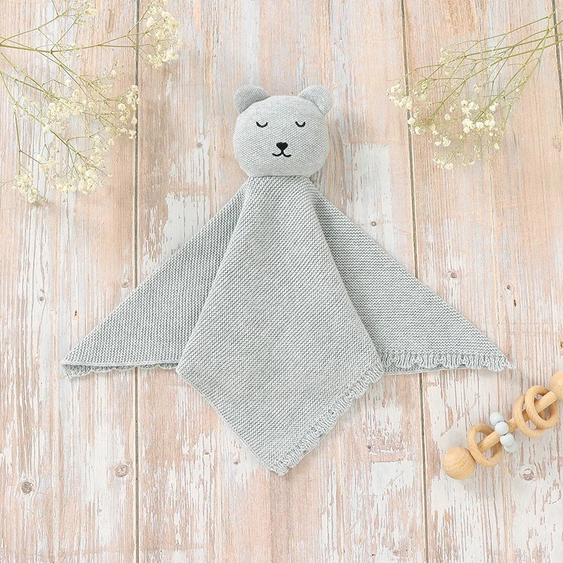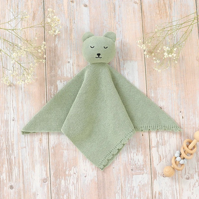 Ensure your baby feels soothed and secure with this ultra-soft cotton knitted comfort blanket. Designed specifically for newborns and toddlers, this adorable bear-shaped blanket is perfect for creating a sense of calm and comfort. Whether it’s time for a nap, bedtime, or just a relaxing moment, this 14.5″x14.5″ comfort towel helps ease your baby into peaceful rest. It’s lightweight, breathable, and gentle on sensitive skin, making it the ideal sleep companion for your little one.