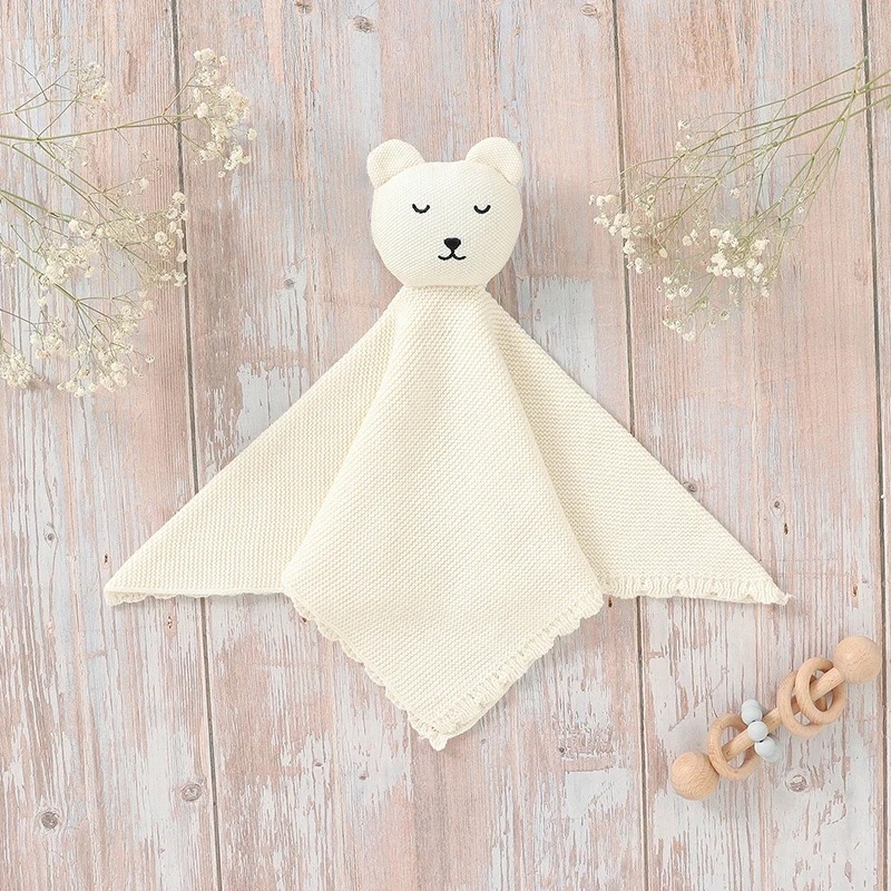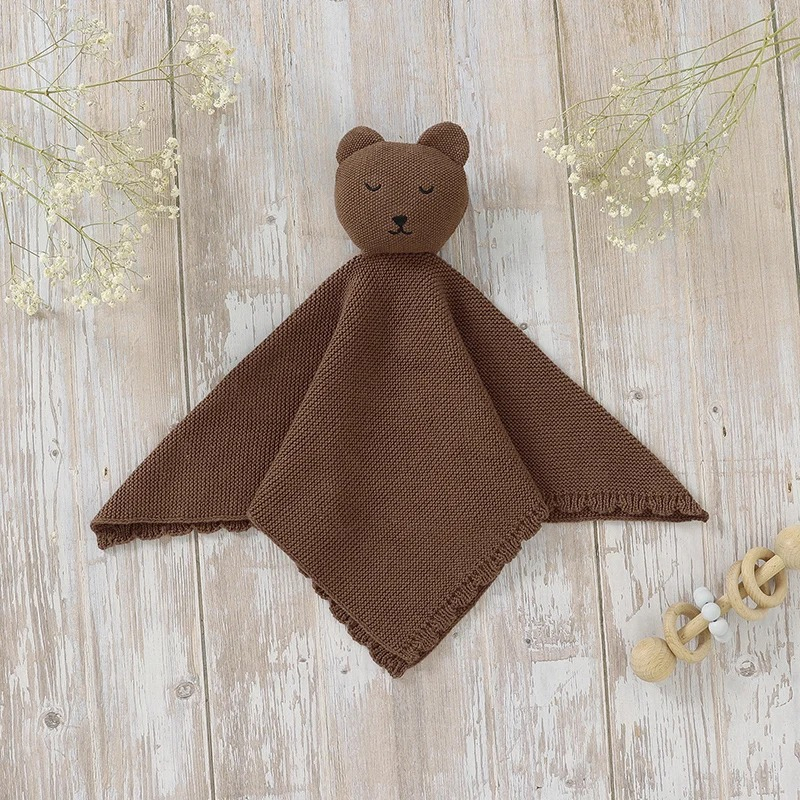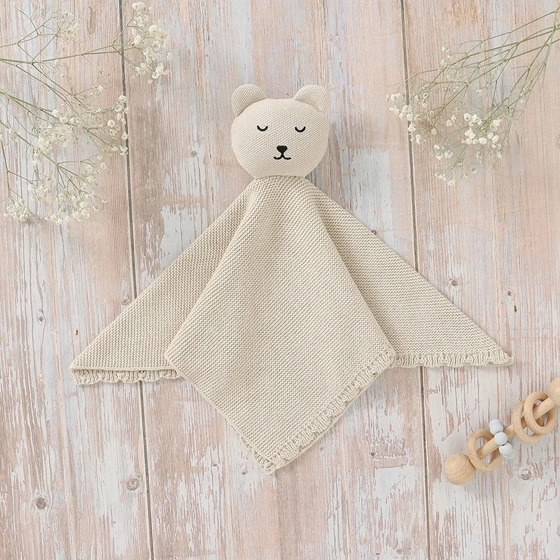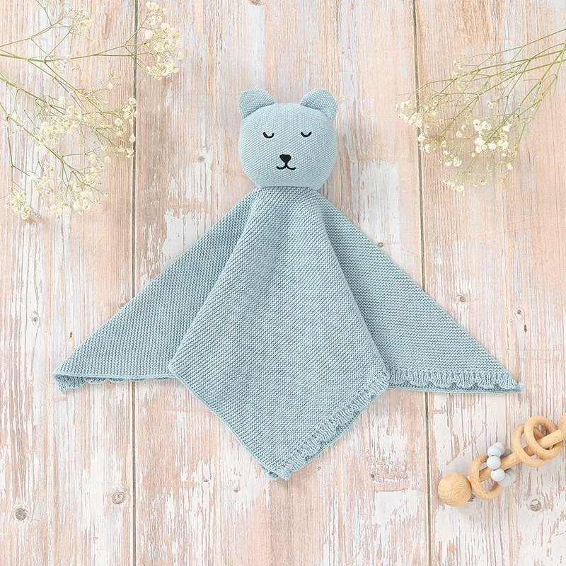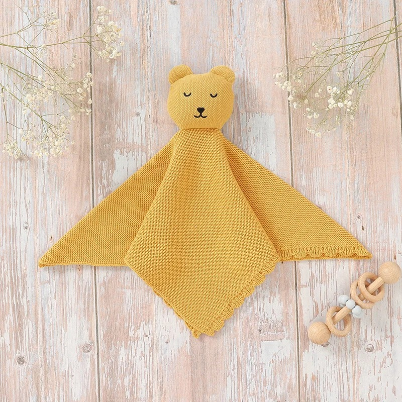 This comfort blanket is more than just a toy—it’s an essential sleep and calm companion for babies and toddlers alike. The cotton-knit design makes it durable yet soft, offering long-lasting comfort for your child. Its compact size allows for easy carrying, so your baby can enjoy it at home, on car rides, or even at daycare. The cute bear design adds a playful touch while offering the comfort of a cuddle, making it a must-have item in your nursery or diaper bag.