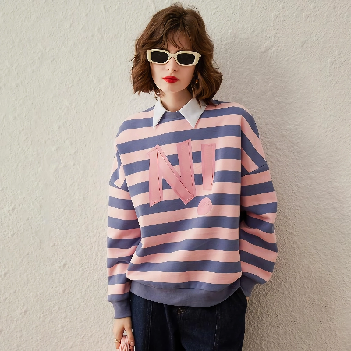 Our Striped Letter Print Sweatshirt is more than just a regular top—it’s designed to be your go-to for those cooler autumn and winter days. The loose-fitting, casual style is perfect for layering over your favorite jeans or leggings. With full-length sleeves and a regular length cut, this sweatshirt is both practical and flattering. The playful letter print combined with sequin embroidery offers a unique touch, making it an ideal piece for those who want to stand out while staying comfortable. The fine yarn composition and medium elasticity give it the right amount of stretch, ensuring a perfect fit every time.