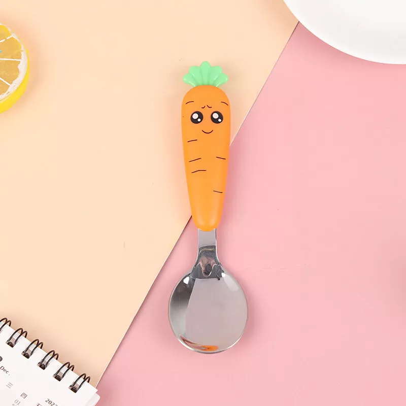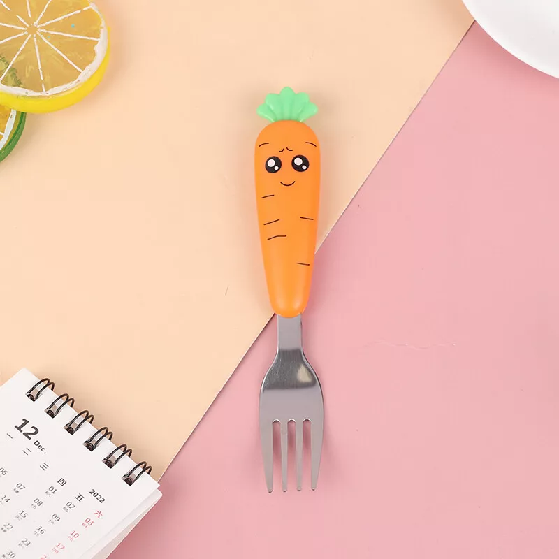 Introduce your toddler to the fun and independence of self-feeding with our Toddler Stainless Steel Utensils with Carrot Handle. Designed with little hands in mind, this set features a playful carrot-themed handle that is both fun and functional, making mealtime an adventure every day!