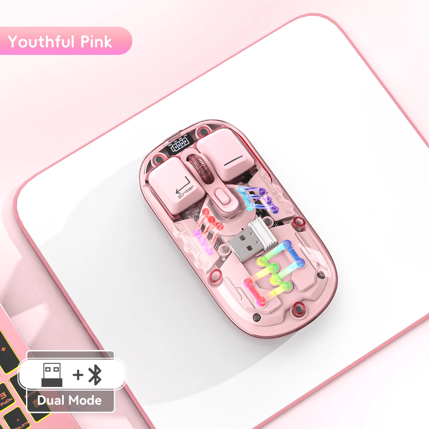 The Transparent Dual-Mode Wireless Mouse is ideal for professionals and gamers alike. Whether you’re navigating documents, creating presentations, or playing games, its high precision and customizable RGB lighting make it perfect for any setting. Its dual-mode functionality is great for quick and easy switching between devices, whether you’re using a laptop, PC, or notebook.