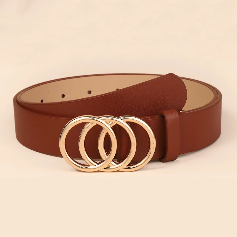 Introducing a must-have accessory for every fashion-forward woman—our stylish women’s belt featuring a chic three-ring alloy buckle decoration. Whether you’re dressing up for a special occasion or adding a touch of flair to your everyday outfits, this belt is the perfect choice to complement your look. Designed to be both trendy and versatile, it effortlessly enhances your wardrobe, making it a staple piece you’ll reach for time and again.