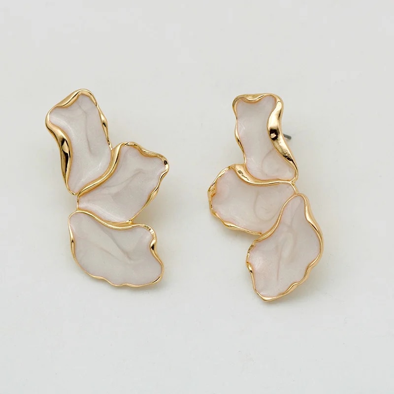 The special blend of trendiness and quality sets these earrings apart. The irregular petal design and cream enamel finish offer a unique, fashionable look that you won’t find with just any jewelry. They represent a bold choice for the woman who dares to be different and values quality and style in her accessories.