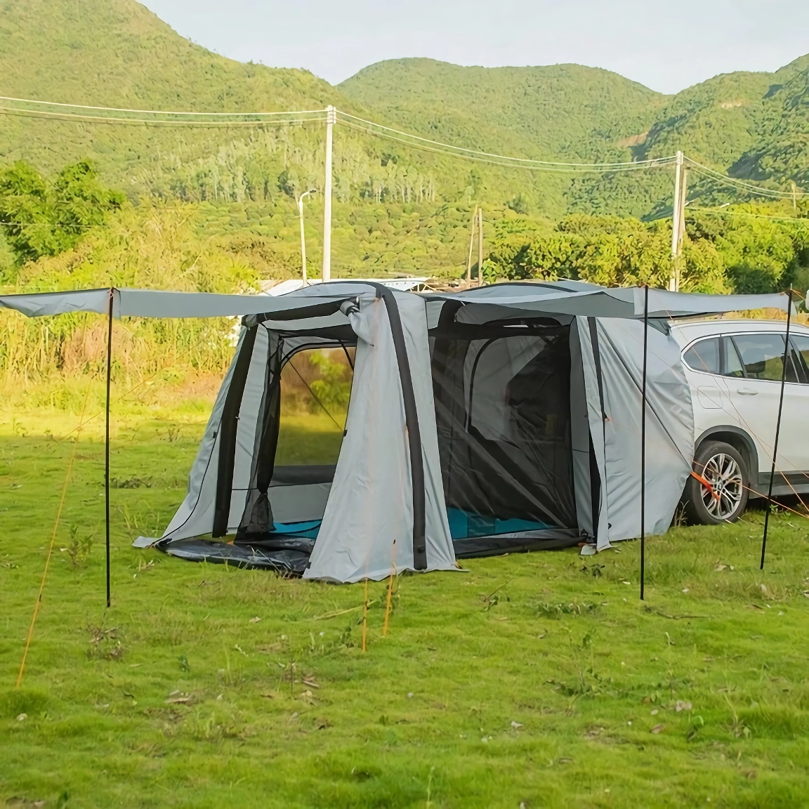 This car rear tent is more than just a shelter; it’s an upgrade to your outdoor lifestyle. Its unique tunnel shape and inflatable structure make setup a breeze, while the spacious interior ensures a comfortable stay for your entire group. The breathable mesh design and waterproof material provide a cozy, dry, and bug-free environment, making it ideal for all seasons. Whether you’re camping in the woods or enjoying a beach barbecue, this tent has got you covered. Unleash the adventurer in you and create unforgettable memories with our Inflatable Car Tent!