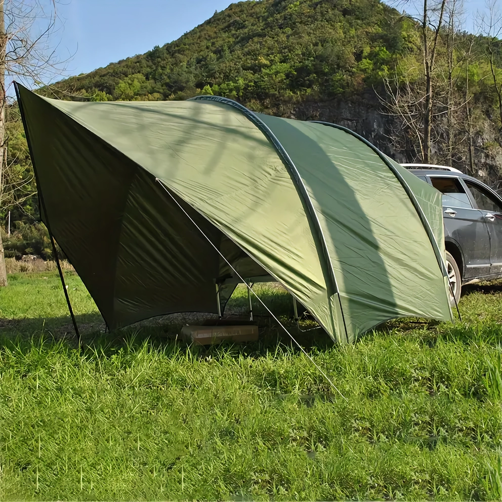 Our Camping Car Rear Tent stands out with its eggshell-like shape, offering not just functionality but also a touch of style to your outdoor setup. The silver coating on various color options not only adds to its aesthetic appeal but also enhances its sun-protective capabilities. Its large size ensures ample space for group activities, while its lightweight design makes transportation and setup a breeze.