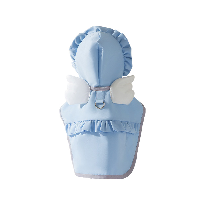 Our raincoat features a convenient cape design, making it incredibly easy to put on and take off. No more struggling with complicated outfits—just slip it over your dog’s back, and you’re ready to go! Plus, with the included tow buckle, attaching a leash for a walk is more convenient than ever. This makes the raincoat not only functional for wet weather but also ideal for travel, ensuring your dog stays dry on the go.