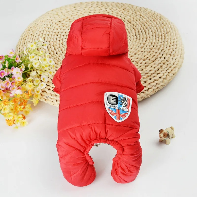 This winter jumpsuit isn’t just about looks; it’s about keeping your pet safe and comfortable. The snug fit provides warmth without restricting movement, allowing your dog to explore freely. It’s the perfect outerwear for cold weather walks, snowy days, or simply lounging around at home. Plus, the 100% cotton fabric is easy to clean, ensuring that your pup always looks its best.