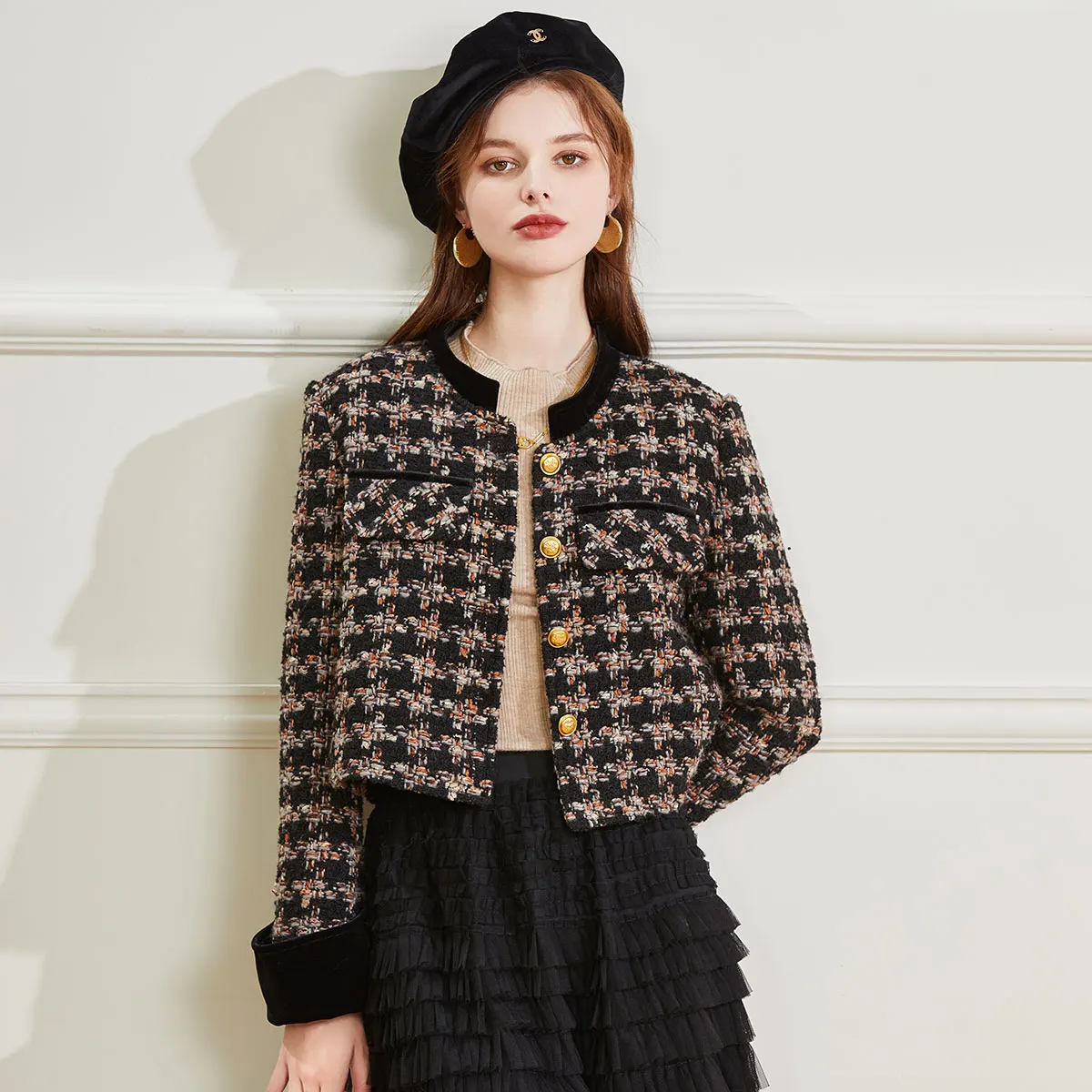 Crafted with a blend of high-quality polyester, spandex, and viscose, it offers a standard thickness, making it ideal for cooler weather without feeling too bulky. The round neck and button-down design add to its classic yet contemporary look, while the plaid pattern lends a touch of retro charm. With long sleeves and a formal style, this coat is perfect for layering, making it both versatile and practical for various occasions.
